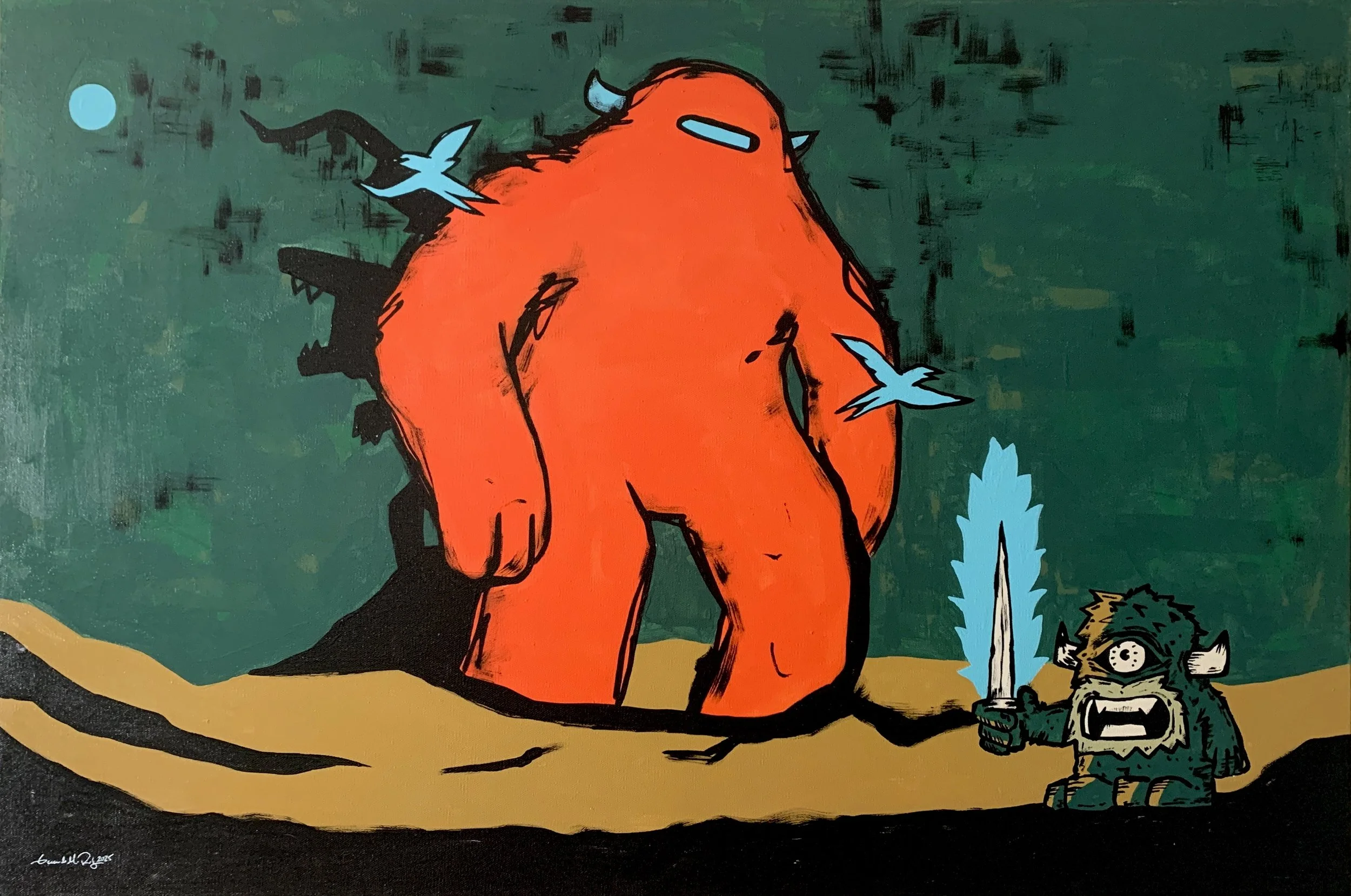 When the elders spoke of warriors, it was never my form I envisioned marching for the quest. Neither heroic strength nor intimidating stature were my gifts of birth, yet here I stood with sabre in hand and courage in my chest. I was, alas, bladeborn; chosen for this moment not by my own intention but from a calling beyond this earthly realm. The blue-blazed blade ignited the spark of muffled bravery within me, and I knew how my story would be told: I was the Giant Slayer.